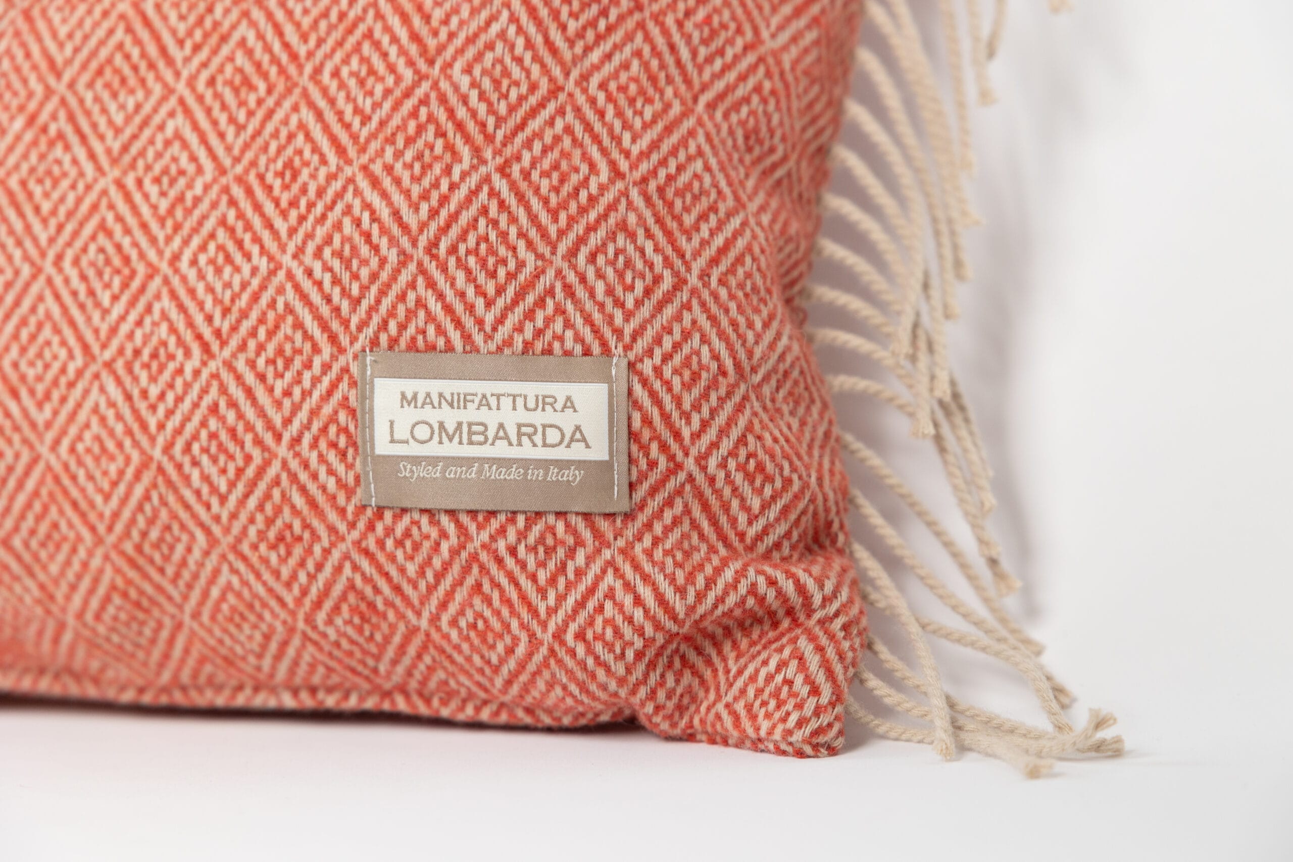 Manifattura Lombarda kussen – 40×30 met franjes – koraal – Sirmione